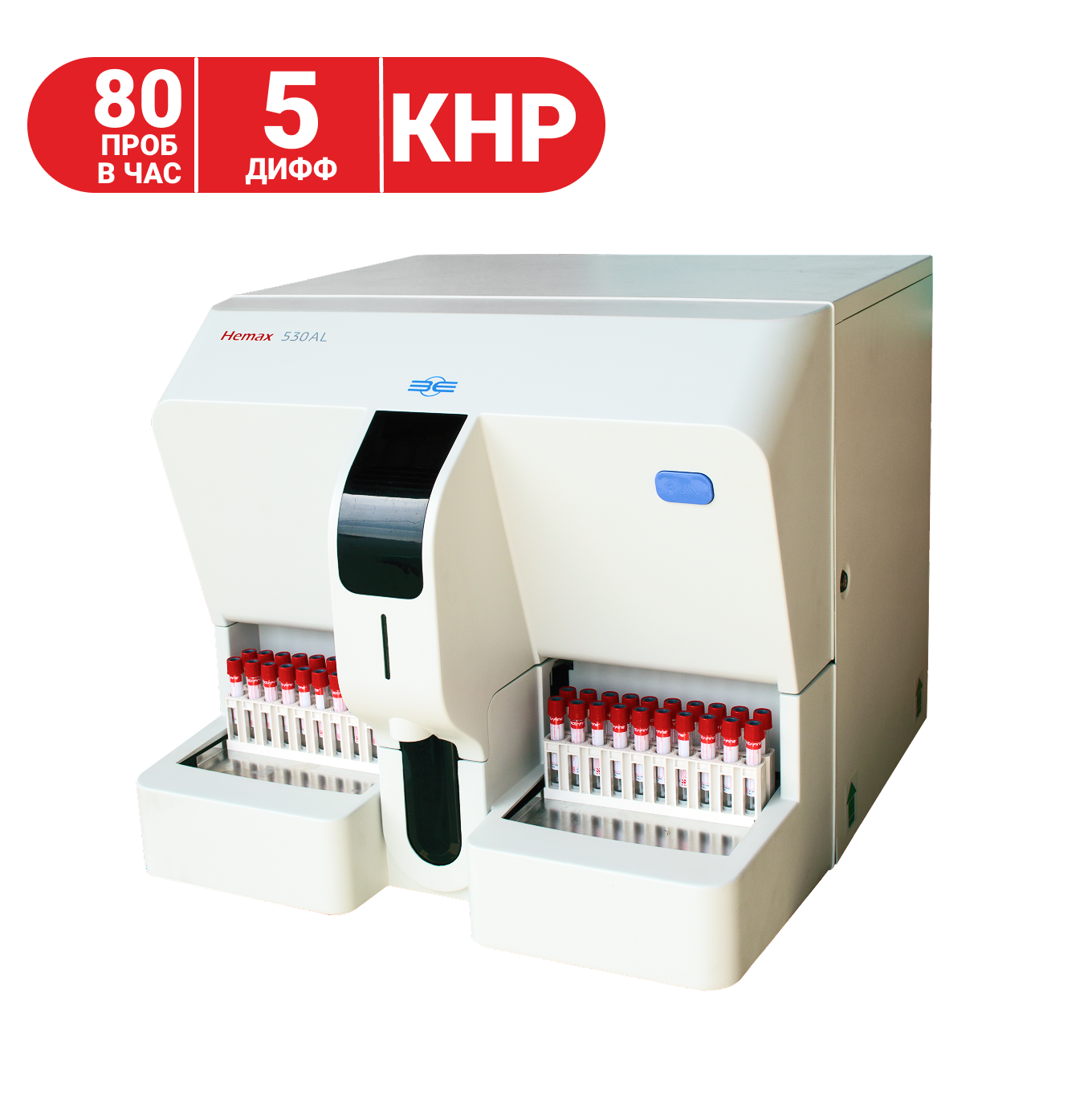 Гематологический автоматический анализатор HEMAX 530AL — современный 5-ДИФФ анализатор с автозагрузчиком на 60 пробирок. Прибор предназначен для определения 29 параметров общего анализа крови с дифференциацией лейкоцитов на 5 популяций и имеет множество полезных функций: спящий режим, самодиагностика и многое другое. Прибор отличается полностью автоматическим обслуживанием и видимой функцией самоконтроля и интеллектуальной диагностикой неисправностей. В работе данного анализатора применяется ряд современных технологий – метод электрического импеданса, метод проточной цитометрии, колориметрический (бесцианидный) метод определения HGB. Наличие в конструкции шприцевых насосов и полупроводникового лазера, а также возможность предварительного нагрева реагентов и перемешивания в автоматическом режиме образца на борту анализатора способствуют получению объективных данных о состоянии крови пациента.