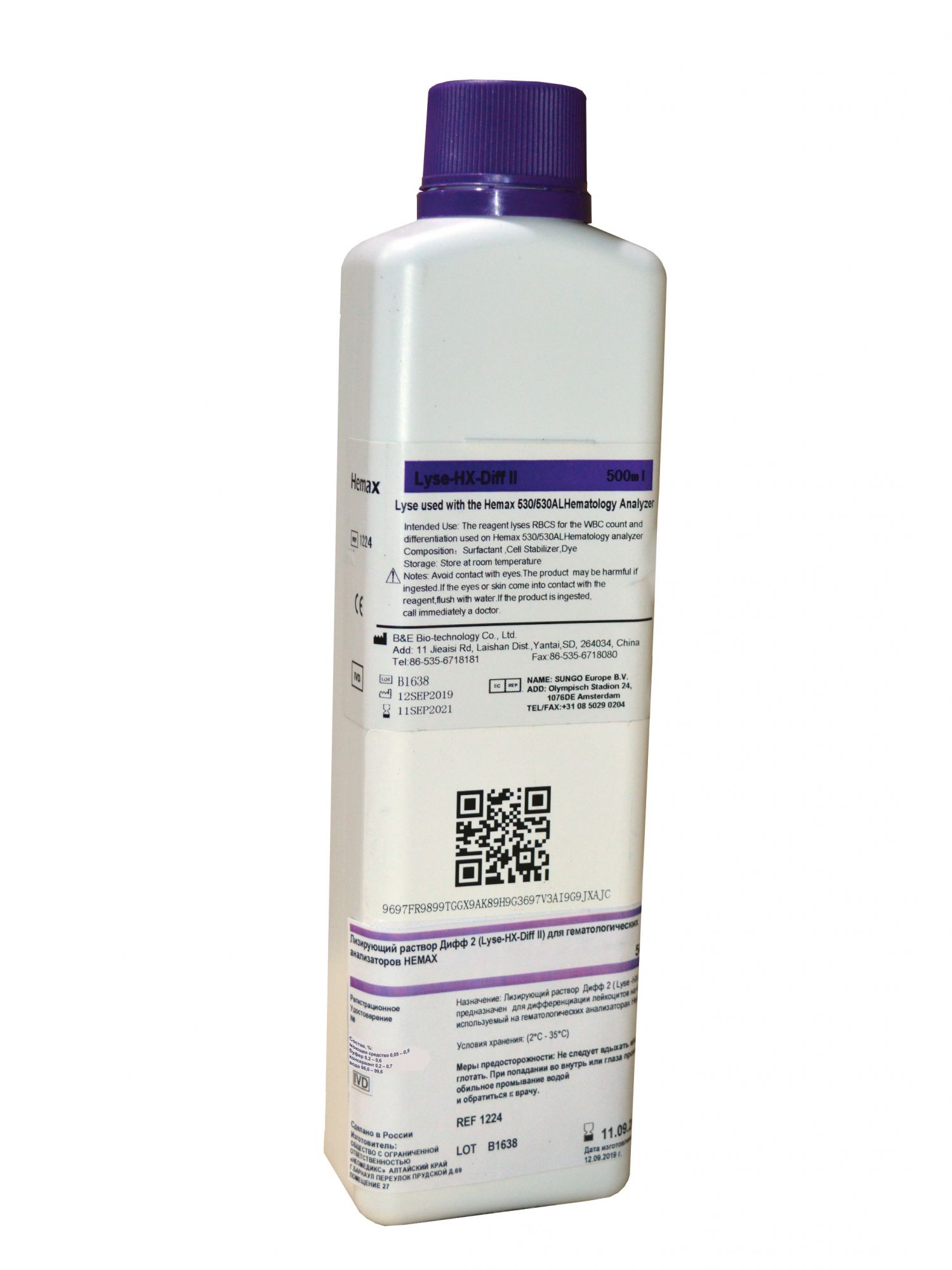 Лизирующий раствор (Lyse HX-Diff II) расфасован во флаконы объемом 0,5 л.