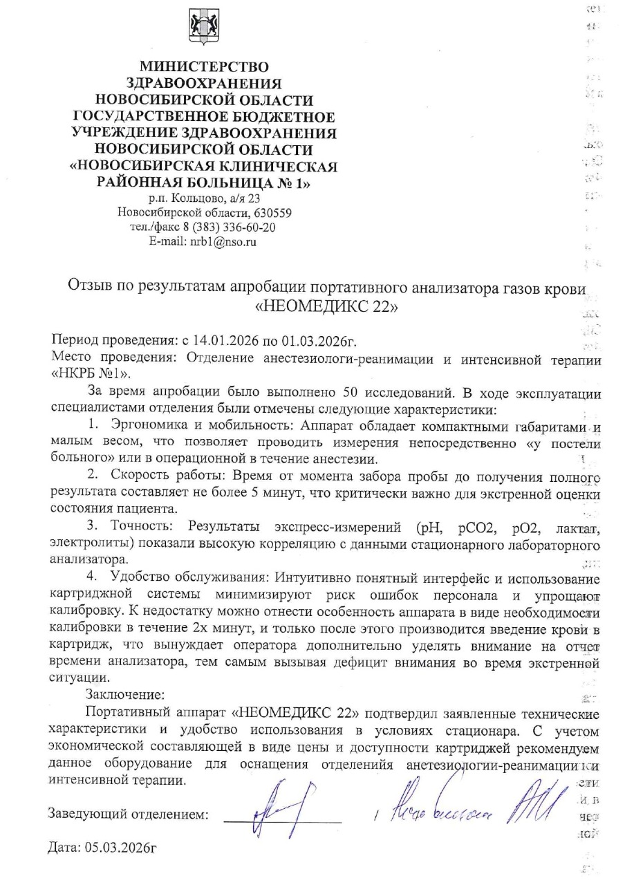 Анализатор НЕОМЕДИКС 22 - портативный анализатор газов крови, электролитов, гематокрита, метаболитов