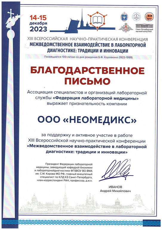 По результатам взаимодействия с сотрудниками ООО «НЕОМЕДИКС» хотелось бы отметить высокую квалификацию специалистов, участвующих в процессе установки, настройки и эксплуатации оборудования.